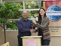 “Achievement” was our theme this week as this summer’s Speechcraft program drew toward conclusion. Treasurer Sonja presided over the meeting for her first time.