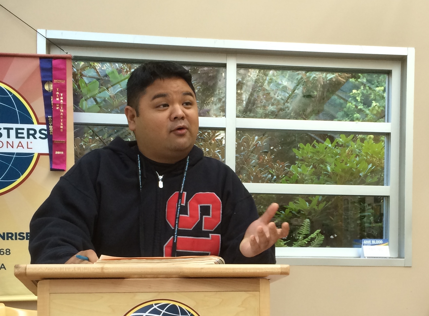 In table topics, Katey Noonan asked for advice in how she can balance her own increasingly out-of-balance life. Michelle Delappe took home the ribbon for best evaluator, and Peter Feysa provided the denouement of the meeting with both the word of the day (“denouement”) and the winning Table Topics presentation.