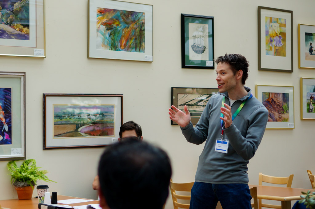For Table Topics, Mark wowed us with challenging, imaginative questions ranging from a plug to Steven Spielberg at a drive-in burger joint for a screenplay of a film called “Busted” to a Mandela-inspired topic of a cause for which we are willing to sacrifice everything. Scott, Bianca, Nicole, Janell, Seva, Michelle, and Brian all took a turn delivering an extemporaneous answer, with the prize for Best Table Topics going to Seva.