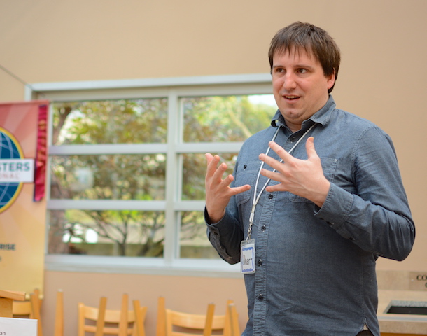 Our last speaker of the day was Ken B., practicing his speech for the International  Speech Competition.  In his speech titled       “ The crisis we create”,   Ken takes us back to a near death experience that transformed his life. Barreling down the road  at 90 mph, in a clunker without seat bolts or brakes will make your life flash in front of your eyes, especially when you see the roadside telephone pole rushing towards you!  Both Ken and Dennis, his pal, lived to tell the tale . Ken walked away, transformed,  with a new found clarity and purpose. He enjoined the audience to create a crisis to transform their lives. Chaos begetting clarity?  Interesting thought. Thanks Ken!