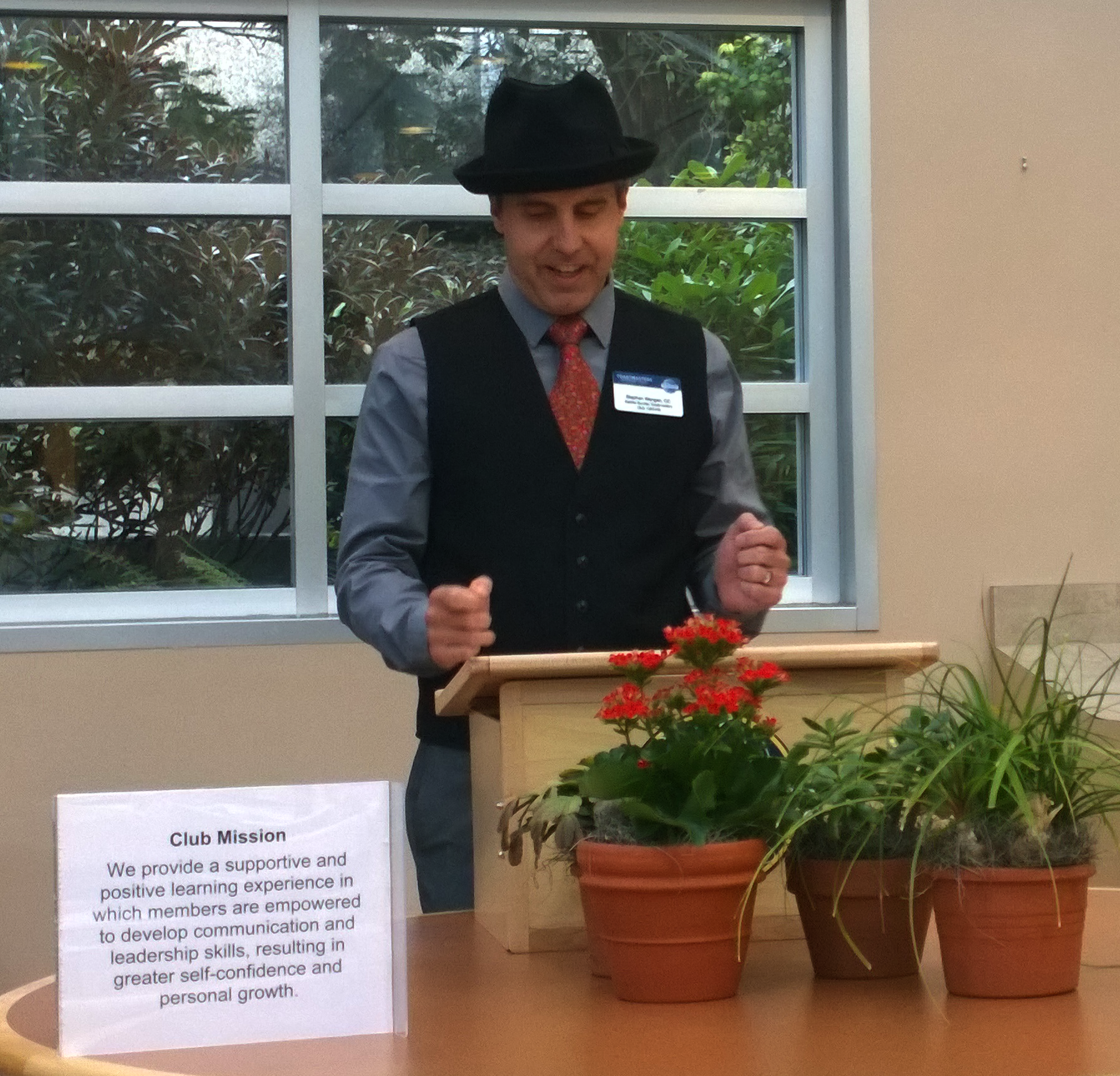 Aviary Photo_130575620864471961Reaching into his years as a stand-up comedian, Andy Koopman’s “Techniques for Improving Memorization in Public Speaking” offered several shortcuts that could help Toastmasters to ditch their notes. Andy described the “Link” method, in which the speaker transforms paragraphs of text into interconnected mental graphics, and the “Memory Palace,” where the rooms of a house hold each of the speech’s paragraphs.