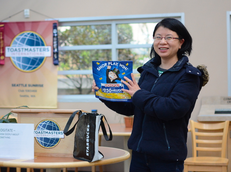 Isabella Z. presented project #8 from the CC manual. In her speech titled “ How to play Monopoly”, Isabella shared her passion for this promotional campaign held by a national food chain. She explained the rules of the games and provided a wealth of very useful information about how to stay organized and win prizes. Isabella’s enthusiasm for this game” on paper, not computer” was irresistible!