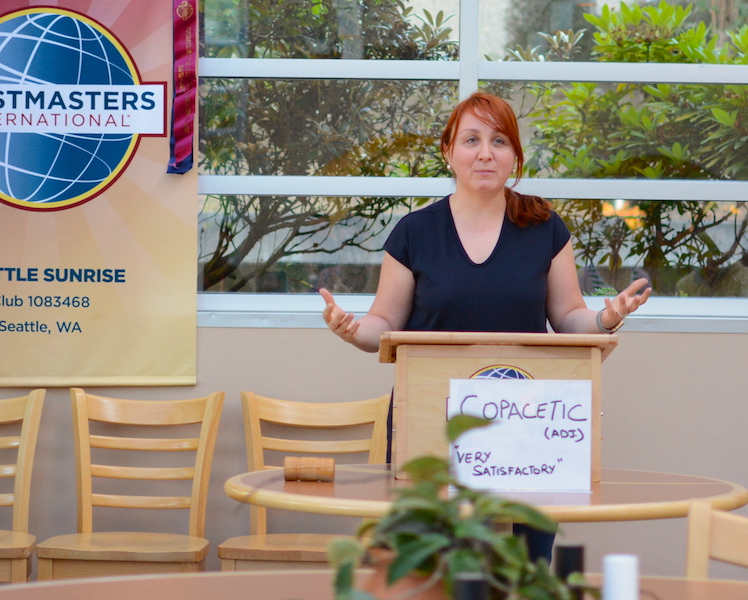 Speaker #1 Lidia S., presented her ice breaker titled : Learn, Read, Ski. Lidia who was born and raised in Russia has a strong passion for learning, reading and skiing. Good students are respected and rewarded by peers and teachers in Russia. Being a good student was also a skill that Lidia traded to get out of doing house chores. Lidia’s love of exercise and studying brings her to Sunrise Toastmaster where she will get plenty of opportunity to exercise her public speaking skills.