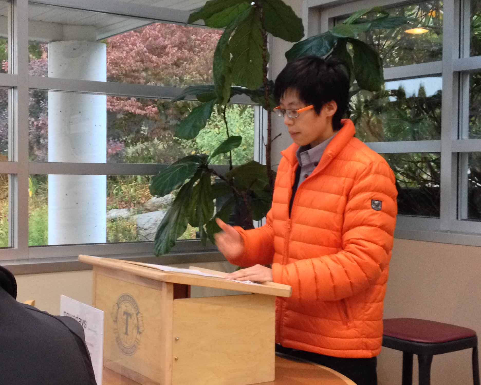 Shen was our second speaker, presenting “Cultural Differences,” his second project from the competent communicator manual. Based on his observations of three cultures, growing up in China, studying in the U.S., and starting a business in Africa, Shen explained several differences between the three cultures. He persuasively exhorted the audience to “embrace the differences” among cultures.