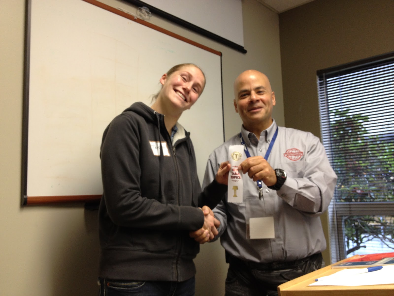 - Nicole C. led the spontaneous speaking session on the theme of Procrastination. Guest Tammy took the honors for Best Table Topic.