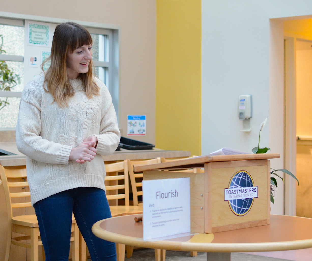 Rached H. presented her icebreaker speech in which she shared two of her passions: scuba diving and skiing.